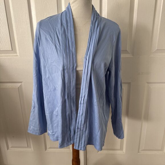 LL Bean Womens Open Pleated Cardigan XL Supima Cotton Blue Corp Core Preppy