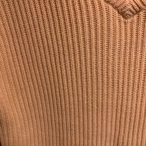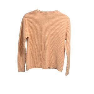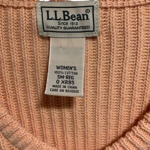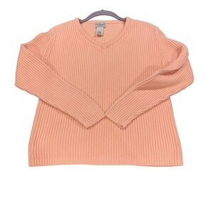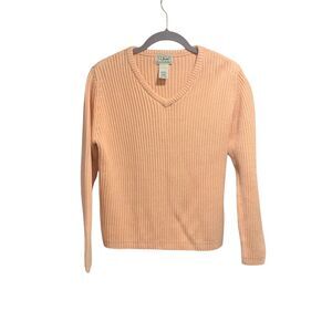 LL Bean Womens Peach Ribbed V Neck Long Sleeve Sweater S Chunky Hiking Outdoors