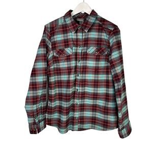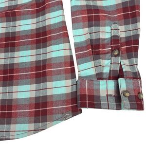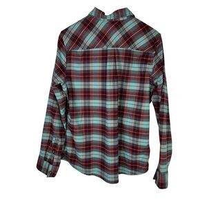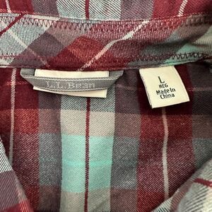 LL Bean Womens Plaid Flannel Shirt size Large Turquoise Rust