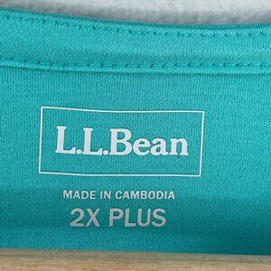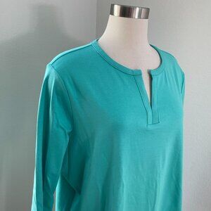 LL Bean Womens Plus 2X Green Cotton Tunic Top 3/4 Sleeve Split V Neck Shirt