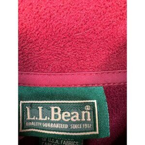 This L.L. Bean fleece jacket offers warmth and comfort with its Polartec material. Ideal for cooler weather, it features a full zip closure and a vibrant red color.
