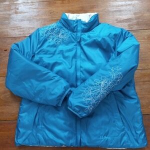 LL Bean Women's Primaloft Floral Embroidered Reversible Puffer Jacket XL