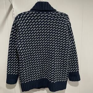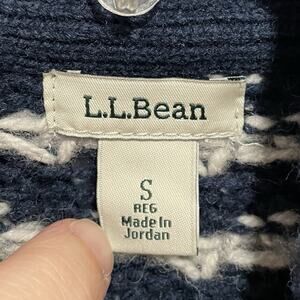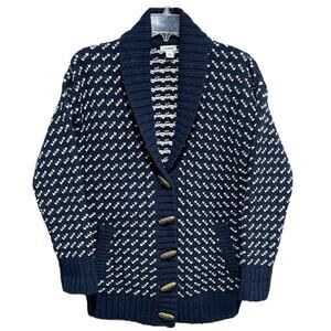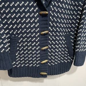 LL Bean Womens Ragg Wool Birds Eye Knit Caridgan Sweater Size Small Navy Blue