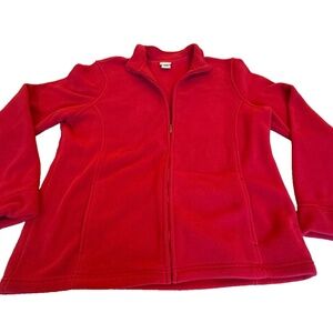 L.L. Bean Women's Red Fleece Full Zip Jacket; Pockets; Mock Neck; Large Reg.