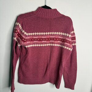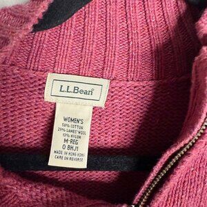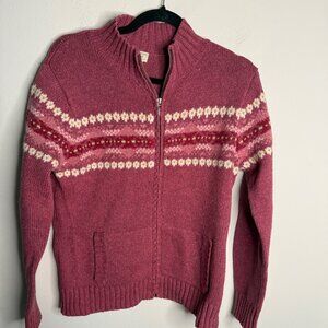 L.L. Bean Women's Red Floral Print Long Sleeve Zip Up Sweater - Size M Medium