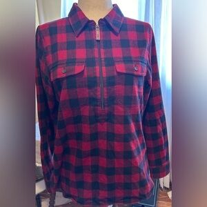 L.L. Bean Women's Relaxed Fit Scotch Plaid Quarter Zip Pullover Size Medium Red & Black