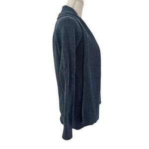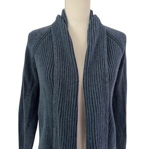 LL Bean Womens Ribbed Cotton Knit Open Front Shawl Cardigan Size S Blue Preppy