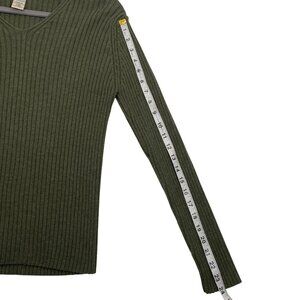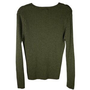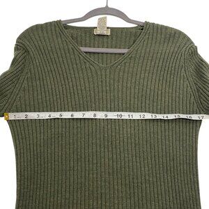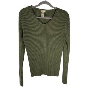 L.L. Bean Womens Ribbed V-Neck Sweater L-Reg 100% pure new wool Wool dark Olive