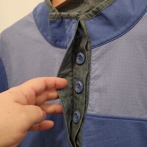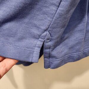 LL Bean Women's Rugby Pullover Chambray Trim Sweatshirt Blue Size XL. In excellent, pre-owned, condition. No visible flaws. Very nice cornflower blue with lavender upper, charcoal accent collar, and concealed 1/4 button placket.