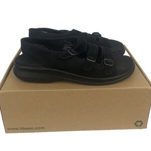 L.L. Bean Womens Sandals Size 8 Medium Triple Strap Adjustable Black Suede Shoes