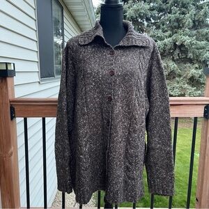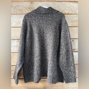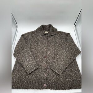 LL Bean Womens Size 2X Cable Knit Wool Blend Cardigan Sweater Speckled Fisherman