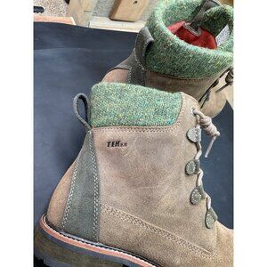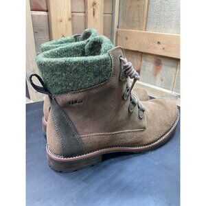 L.L. Bean Womens Size 9 Medium Suede Leather Boots W/ Knit Cuffs Brown & Green