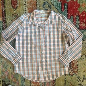 L.L. Bean Women's Size L Blouse Top Long Sleeve Multicolor Plaid Cotton Collared