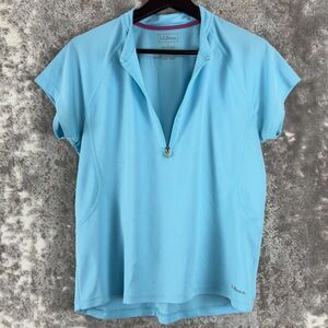 LL Bean Womens Size L Cycling Shirt Blue Short Sleeve 1/4 Zip Top Athletic