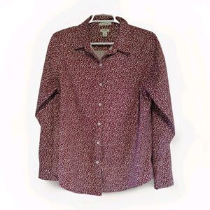 LL Bean Womens Size M Button Up Shirt Ditzy Floral Wrinkle Free Long Sleeve Top