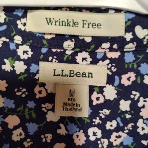 LL Bean Womens Size M Button Up Shirt Ditzy Floral Wrinkle Free Long Sleeve Top