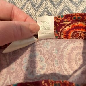 Color & Pattern: Burnt orange with a floral mandala print