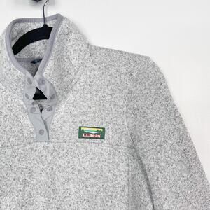 LL Bean Womens Small Pewter Gray Sweater Fleece Pullover Snap Regular Pockets