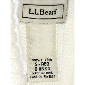 Pre-owned L.L.Bean Women’s Short Sleeve Cardigan Sweater in size Small Regular. This 100% cotton cardigan features a classic cable knit design, ribbed collar, button-front closure, and two front patch pockets. The cream/ivory color makes it versatile for layering year-round.