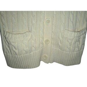 L.L. Bean Womens Small Short Sleeve Cardigan Sweater Cream Cable Knit Button