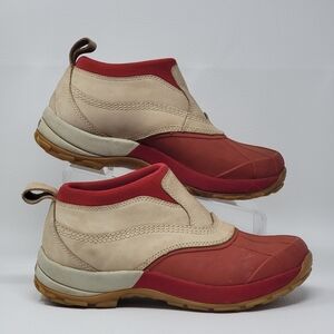 L.L. Bean Womens Storm Chaser Boots Red Tan Leather Slip-On Waterproof Size 9.5