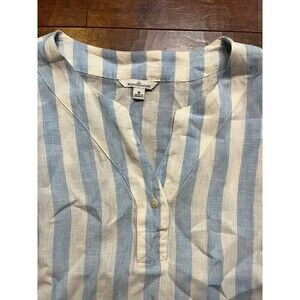 LL Bean Womens Striped 100% Lien Casual Popover Short Sleeve Shirt Sz M