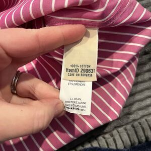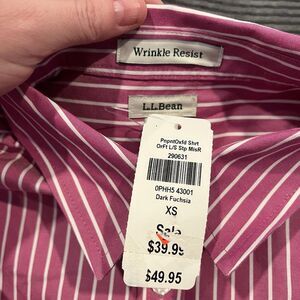 This new with tags L.L. Bean Women's Striped Dark Fuchsia Long Sleeve Top in size XS is a versatile and stylish button-up shirt made from 100% cotton. The collared neckline and button closure add a classic touch, while the striped pattern in a bold fuchsia color adds a pop of personal style. Ideal for various occasions including travel, casual outings, formal events, workwear, and business meetings, this top offers comfort with its knit fabric and easy care properties. Its long sleeves and regular fit make it a flattering and practical choice for all seasons.