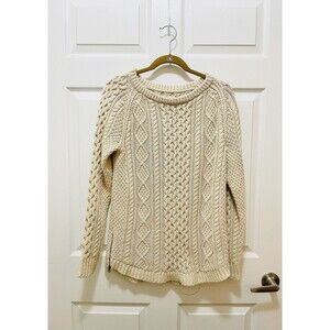 LL Bean Womens Sweater Fisherman Tunic Cable Knit Size XS Cream Ivory