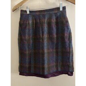 LL Bean Women's Sz 6 Purple Plaid Wool Preppy Short Mini Wrap Skirt