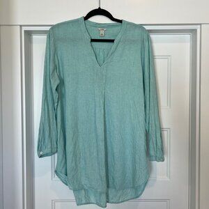 L.L. Bean Women's Teal Premium Washed Linen Splitneck Shirt, Large