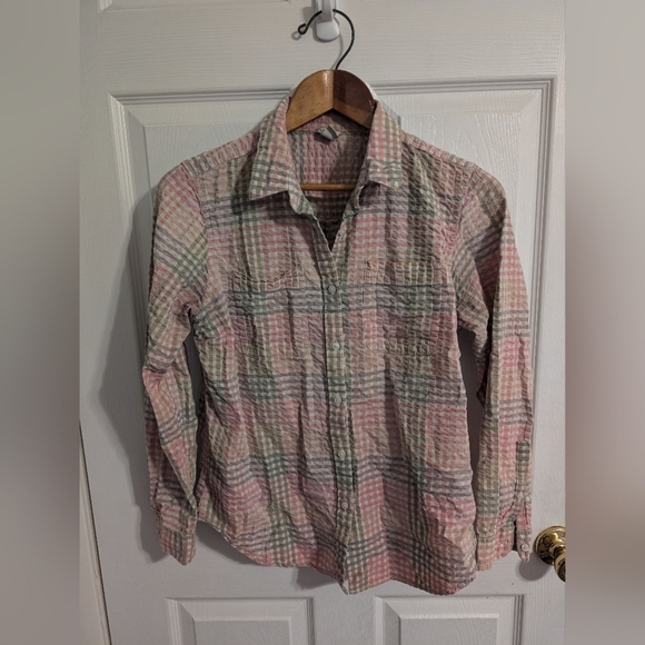 L.L. Bean Womens Top Vacationland Seersucker Long Sleeve Button Down Medium