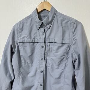 LL Bean Womens Tropicwear Button Shirt Size S Blue Vented Hiking Roll Tab UPF 50