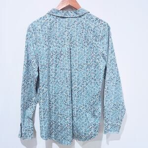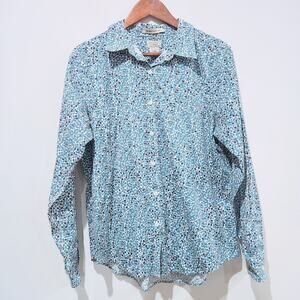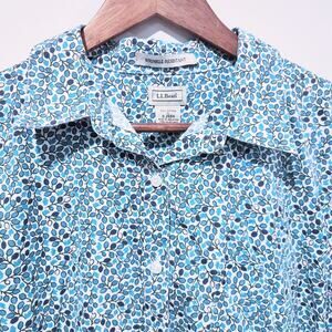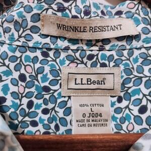 L.L. Bean Womens White Wrinkle Resistant Leaf Print Button Up Blouse Size Large