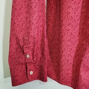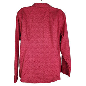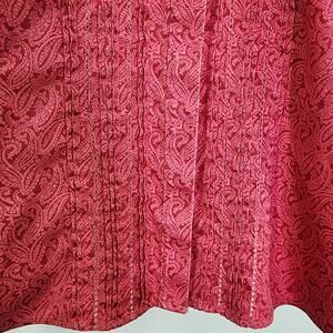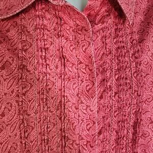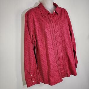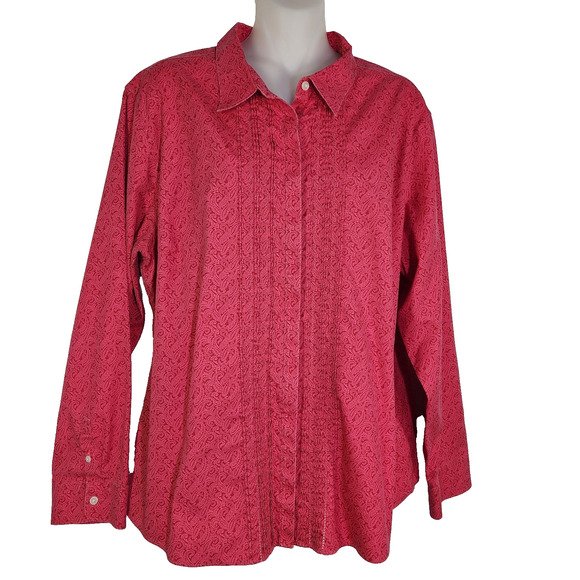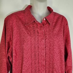LL Bean Womens Wrinkle Resist Pleated Shirt XL Petite Paisley Hidden Button Pink