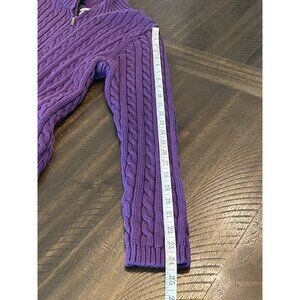 L.L. Bean Women Cable Knit Sweater Purple Preppy Full Zip Fisherman Thick Heavy. Good preowned condition. No stains or holes. Please see photos for details and measurements. Thanks for looking.
