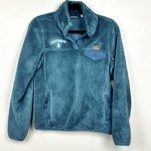 LL Bean Women’s XS Darmouth School Fleece Pullover Blue Green Sweatert 1/4 Snap