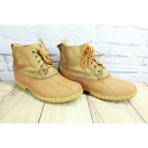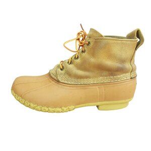 LL Bean Women's Yellow Leather Lace Up Unlined Ankle Duck Boots Size 10 M
