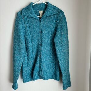 L.L. Bean Women’s cable knit wool blend speckled knit cardigan sweater size large - EUC!