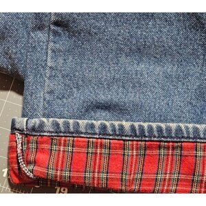 • Red plaid fleece lining adds style