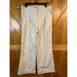 LL Bean Womens Pants Womens 12 Cream Wide Leg NWT cuffed adjustable side straps pleated measurements 34” waist 32” inseam 11.5” rise (0419)