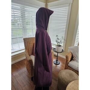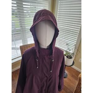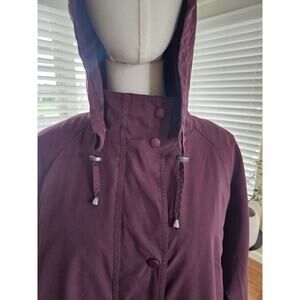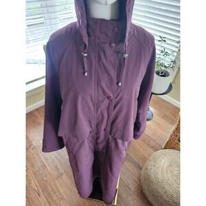 Beautiful wool blend lined long trench coat in a deep purple plum color. This is in excellent condition and comes from a clean and smoke free home. The liner can be removed inside. Has pockets inside and out. Comes from a clean and smoke free home. Please see measurements in the photos.