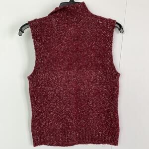 L L.L. Bean Maroon Knit Mockneck Button Down Vest Top, beautiful knit pattern