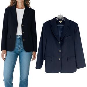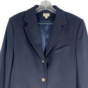 L.L. Bean Wool Cashmere Blend 3 Button Blazer Jacket Navy Blue