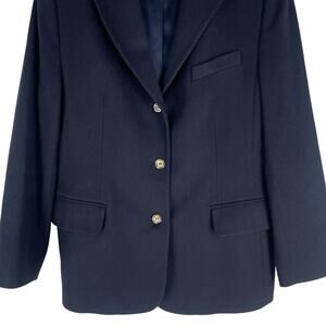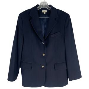 L.L. Bean Wool Cashmere Blend 3 Button Blazer Jacket Navy Blue Size 16P
