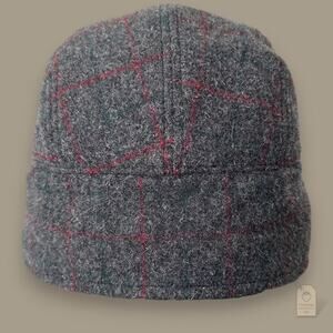 L.L. Bean Wool Plaid Winter Ear Flap Hat Gray Red Check Small