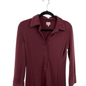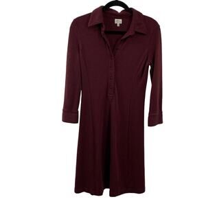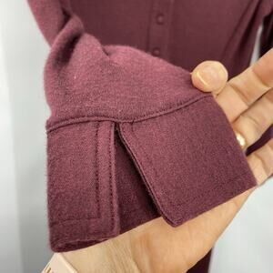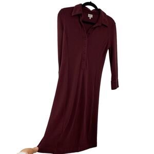 LL Bean Wool Sheath Dress Size 4 Wine Long Sleeves Button Front Knee Length