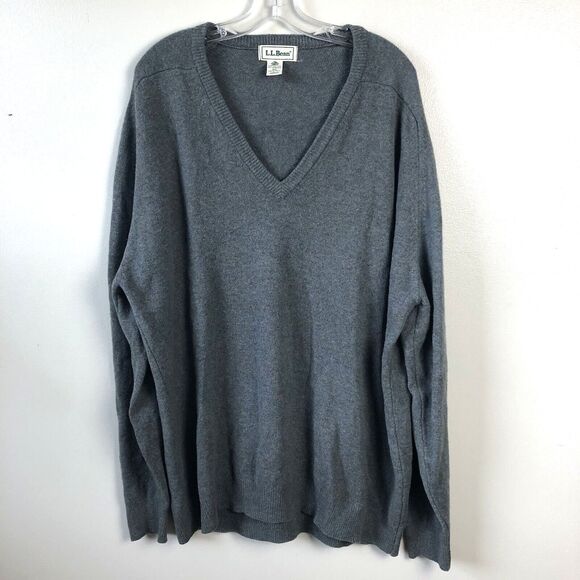 LL Bean Wool Sweater Mens XL Tall Gray 100% Lambswool Made in Scotland *Flaw*