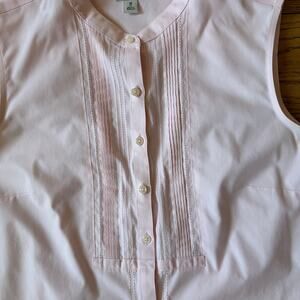 L.L. Bean Wrinkle Resistant Button Up Sleeveless SZ MP Pintuck Pink Collarless