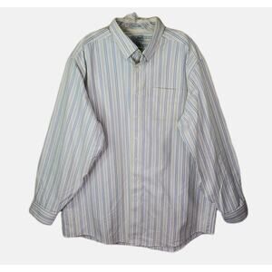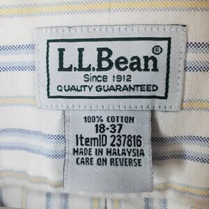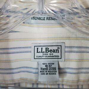 LL Bean Wrinkle Resistant Cotton Mens Button Shirt Sz 18-37 White Stripe 237816