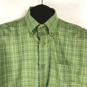 L.L. Bean Wrinkle-Resistant Long Sleeve Shirt Men's Medium Green Plaid Cotton